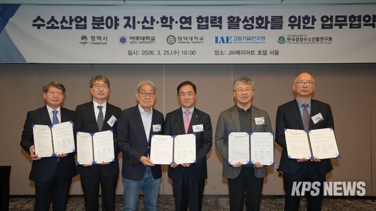 KPSNEWS 김채경 기자 | 평택시는 25일, 아주대학교·평택대학교·고등기술연구원·한국청정수소진흥연구원과 '수소산업 분야 지산학연 협력 활성화를 위한 업무협약(MOU)'을 체결했다고 밝혔다.