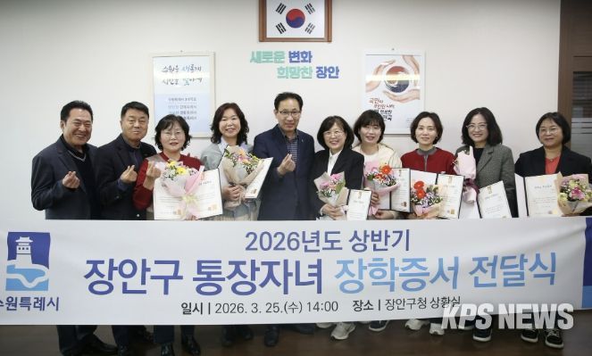 KPSNEWS 김채경 기자 | 수원시 장안구는 지난 25일, 지역 사회 발전을 위해 행정 최일선에서 헌신하고 있는 통장들의 노고를 격려하기 위해 ‘2026년 상반기 통장자녀 장학증서 전달식’을 개최했다고 밝혔다.
