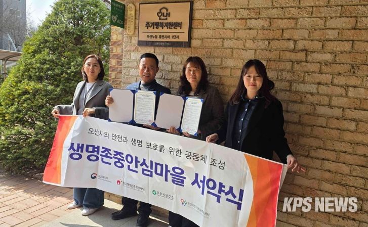 KPSNEWS 김채경 기자 | 오산시정신건강복지센터 부설 자살예방센터는 지난 26일 오산누읍휴먼시아1단지 주거행복지원센터와 생명존중 문화 조성을 위한 ‘생명존중 안심마을’ 구축 서약을 체결했다.