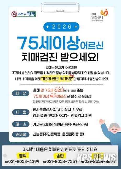 KPSNEWS 김채경 기자 | 평택시는 2026년 치매 고위험군을 대상으로 한 집중 검진 및 체계적인 관리 서비스를 제공하고 있다.