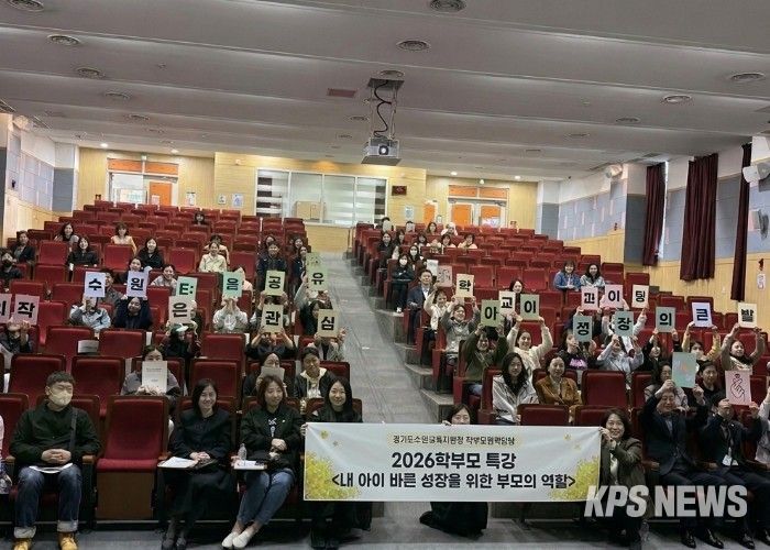 KPSNEWS 김채경 기자 | 경기도수원교육지원청은 4월 2일 오전, 수원시 평생학습관 대강당에서 관내 학부모 200여 명이 참석한 가운데‘2026 학부모 특강’'내 아이 바른 성장을 위한 부모의 역할'을 성공적으로 개최했다고 밝혔다.
