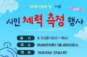 KPSNEWS 김채경 기자 | 안성시보건소는 ‘안성 시민의 날’을 맞아 시민의 건강 증진과 올바른 생활 습관 형성을 돕기 위한 ‘시민 체력 측정 행사’를 개최한다고 밝혔다. 이번 행사는 오는 4월 3일 오후 12시부터 4시까지 안성시 여성비전센터 1층 공유오피스에서 진행된다. 현장에서는 체력 측정뿐만 아니라 심뇌혈관 질환 예방, 신체활동, 금연, 구강 관리 등 건강 인식 향상을 위한 다양한 건강증진 부스도 함께 운영될 예정이다. 체력 측정은 1인당 약 30분이 소요되며, 원활한 운영을 위해 오는 3월 27일까지 선착순 80명을 대상으로 사전 접수를 받는다. 신청은 홍보물에 포함된 QR코드 또는 온라인 설문 링크를 통해 할 수 있다. 당일 현장 접수도 가능하지만, 대기 시간이 발생할 수 있어 사전 예약이 권장된다. 상세 측정 절차는 ▲혈압 체크 ▲체격 검사(신장, 체중, 체성분 분석) ▲근력 측정 ▲심폐지구력(65세 이상은 협응력) 측정 순이며, 측정 후에는 결과지 제공과 함께 1:1 맞춤형 상담이 이뤄진다. 단, 안전을 위해 행사 당일 혈압이 고혈압 기준(수축기 160mmHg 또는 이완기 100mmHg 이상)을
