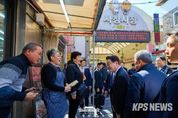 KPSNEWS 김채경 기자 | 이재명 대통령은 13일 오후, 충북 청주 사창시장을 방문하여 민생 현장의 활기를 점검하고 지역 주민 및 상인들과 진솔한 소통의 시간을 가졌다. 청주 사창시장은 조선시대 양곡을 보관했다는 데에서 유래를 찾을 수 있는 유서 깊은 곳으로, 1980년대 현대적 시장의 면모를 갖춘 이래 지역 경제의 중심이자 종합시장으로서 소임을 다해오고 있다. 상인회장의 안내로 시장 곳곳을 둘러본 이 대통령은 장을 보러 나온 시민들과 반갑게 인사를 나누었다. 사창시장을 찾은 시민들은 뜨거운 박수와 환호로 대통령을 맞이했으며, 상인들은 “사창시장을 방문해 준 첫 대통령”이라며 반가움을 표했다. 상인들은 대통령의 손을 맞잡고 “더 살기 좋은 나라를 만들어 달라”, “건강을 잘 챙기며 일해 달라”는 격려와 응원을 전하며 따뜻한 포옹을 나누기도 했다. 특히 이 대통령은 시장 내 한 두부가게를 방문해 국산 콩으로 두부를 만드는 과정을 세심하게 살핀 뒤, 가게 안 평상에서 상인회장 및 주인 부부와 나란히 앉아 갓 만든 즉석 두부를 시식하며 담소를 나누었다. 이 대통령이 국산 콩과 수입 콩 두부의 선호도를 묻자, 주인은 “국산 콩