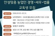 KPSNEWS 김채경 기자 | 안성시농업기술센터가 지역 농업인의 안정적인 영농 활동을 돕기 위해 오는 31일까지 ‘안성맞춤 농업인 경영·세무·법률 교육’ 교육생을 모집한다. 이번 교육은 전문가 특강을 통해 농가 운영 중 발생할 수 있는 경영적, 법적 문제를 사전에 예방하고 해결할 수 있는 역량을 키워주기 위해 마련됐다. 교육은 오는 4월 6일부터 30일까지 주제별 지정된 날짜에 진행된다. 모집 분야는 ▲농업 경영 ▲농업 세무 ▲농업 법률 등 3개 과정이며, 분야별로 30명씩 총 90명을 선발한다. 신청 인원이 초과할 경우 내부 선발 기준에 따라 교육생을 최종 선정할 예정이다. 신청 자격은 농업 경영에 관심 있는 안성시민이라면 누구나 가능하며, 접수는 3월 31일까지다. 참여를 희망하는 시민은 이메일을 보내거나 농업기술센터 농업지도과(보개원삼로 219)를 방문해 신청하면 된다. 시 관계자는 “농업인의 눈높이에 맞춘 경영·법률·세무 전문가 특강이 농가 역량을 강화하는 좋은 기회가 될 것”이라며, “안성 농업의 내실을 다지고 싶은 시민 여러분의 많은 관심과 참여를 바란다”고 말했다.