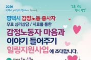 KPSNEWS 김채경 기자 | 평택시노사민정협의회는 지난 2월부터 평택고용복지플러스센터 직업상담사를 대상으로 총 4회에 걸쳐 ‘감정노동 종사자 마음과 이야기 들어주기’심리상담 프로그램을 운영했다. 이번 프로그램은 감정노동에 종사하는 근로자들의 심리적 부담을 완화하고 건강한 노동환경을 조성하기 위해 마련됐으며, 감정노동 종사자 30여 명이 참여했다. 상담은 국제대학교 상담센터 소속 전문 심리상담사가 진행했다. 감정노동은 고객 응대 과정에서 자신의 감정을 조절하며 서비스를 제공해야 하는 업무 특성상 지속적인 스트레스와 심리적 부담에 노출되기 쉬운 만큼, 평택시노사민정협의회는 감정노동 종사자들의 심리적 안정을 지원하고자 이번 상담 프로그램을 운영했다. 평택시노사민정협의회는 올해 하반기에도 심리상담 지원을 지속적으로 추진할 계획이다.