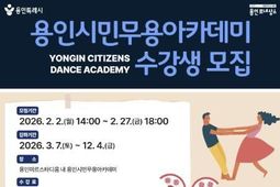 KPSNEWS 김채경 기자 | 용인문화재단은 2026 용인시민무용아카데미 정규 강좌 '늘 배움 마당'의 수강생을 오는 2월 2일부터 모집한다. 용인시민무용아카데미는 시민 참여형 예술교육 프로그램으로 이미 2025년에 시민들로부터 뜨거운 관심과 사랑을 받은 바 있다. 2025년 12월 6일 평생학습관 큰어울마당에서 진행됐던 ‘Good Life~ 춤추는 용인’ 공연은 많은 관람객이 모이며 성공적으로 마무리됐고, 2026년 교육 사업에 대한 문의도 늘었다. 재단은 시민들의 관심에 힘입어 2026년에는 기존보다 강좌 수를 확대해 더 많은 참여 기회를 제공할 계획이다. 이번 정규 강좌는 한국 무용의 멋과 흥을 느낄 수 있는 ▲산조춤 ▲부채입춤 ▲태평무 ▲소고춤 ▲부채춤 ▲도살풀이춤’과 초등학생을 위한 ▲꽃바구니춤 ▲청사초롱춤 등 강좌가 마련되며, 생활무용 분야에서는 에너지와 열정을 느낄 수 있는 ▲벨리 댄스 ▲뮤지컬 댄스 ▲라인 댄스 ▲셔플 댄스 등 강좌를 운영한다. 여기에 더해 ▲전통 소리반이 신설되어 기대를 모으고 있다. 2026 용인시민무용아카데미 정규 강좌는 오는 3월 7일부터 운영될 예정이며, 수강생 모집은 2
