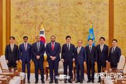 KPSNEWS 김채경 기자 | 이재명 대통령은 28일 오전 「모하메드 빈 압둘아지즈 알-쿨라이피(Mohammed bin Abdulaziz Al-Khulaifi)」 카타르 국왕 특사를 접견했다. 먼저 이 대통령은 지난주 타밈 국왕과의 통화(1.20.) 이후 조속히 특사 방한이 이뤄진 것은 양국의 굳건한 협력 의지를 보여주는 것이라 평가했다. 또한 이번 특사 방한을 계기로 양국이 국방·방산, 투자, 에너지 등 전략 분야에서 호혜적 협력을 한층 더 강화해 나가기를 기대한다고 밝혔다. 알-쿨라이피 특사도 한국에 대한 타밈 국왕의 각별한 신뢰와, 협력 강화에 대한 의지를 직접 전달하고자 이 대통령을 예방했다고 밝혔다. 이어 양 정상의 한-카타르 관계 발전에 대한 공동 의지를 실현하기 위해 노력하겠다고 했다. 이 대통령은 양국이 수교한 지 50년이 넘었고, 양국 관계가 ‘포괄적 전략 동반자 관계’로 격상됐다는 점도 짚었다. 이어 양국이 복잡한 국제정세 속에서도 어려울 때 서로 돕는 진정한 친구로서 지역과 국제평화에 함께 기여하길 바란다고 했다. 끝으로 이 대통령은 타밈 국왕과 서울에서 양국 관계 발전 방안에