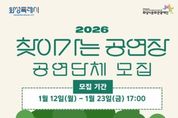 KPSNEWS 김채경 기자 | (재)화성시문화관광재단은 1월 12일부터 1월 23일까지 ‘2026 찾아가는공연장’ 참여 공연단체를 모집한다고 밝혔다. ‘찾아가는 공연장’은 화성시의 곳곳에서 다양한 장르의 공연을 제공함으로써 시민들의 일상적인 문화예술 관람을 돕기 위한 사업으로, 2009년부터 시작된 화성시문화관광재단의 대표 문화사업 중 하나다. 지난 2025년도에는 공개 모집을 통해 40개의 공연단체를 선정했으며, 문화취약계층에 방문공연, 공원 광장 거리공연 등을 통해 다양한 장르의 공연으로 화성시민과 함께했다. ‘2026 찾아가는 공연장’은 약 140회차의 공연을 목표로 운영된다. 이번 공연단체 모집은 3년 이상의 공연활동 경력이 있는 공연단체라면 지역, 장르에 상관없이 신청가능하다. 접수는 1월 12일부터 23일까지 온라인으로만 가능하며, 1차 서류‧영상 심사, 2월 9일~10일 2차 실연‧면담 심사를 거쳐 2월 12일에 최종 선정단체 총 35팀을 발표할 예정이다. 화성시문화관광재단 안필연 대표이사는 “지역과 장르의 제한을 두지 않는 만큼, 화성시 곳곳에서 재능을 뽐내줄 다양한 예술 공연단체들의 많은 관심과
