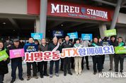 KPSNEWS 김채경 기자 | 용인특례시는 1일 서울 잠실에서 용인시 처인구를 관통하고 청주공항까지 이어지는 중부권 광역급행철도의 (JTX) 민자적격성 조사 신속 통과와 조기 착공 필요성을 강조하기 위한 범시민 서명운동을 시작했다. 시는 오는 31일까지 한 달간 용인 시민과 대한민국 국민 전체를 대상으로 ‘JTX 조기 착공 서명운동’을 펼치기로 하고, 1일 용인FC 개막전이 열리는 용인미르스타디움에 홍보 부스를 운영했다. 이상일 시장도 이날 아내 김미영 여사와 함께 홍보부스를 찾아 서명했다. 시는 5만 명 이상의 서명 확보를 목표로 온오프라인 서명운동을 전개할 계획이다. 용인특례시는 각 읍면동 행정복지센터 민원실에 서명부를 두고 주민 서명을 받는다. 이와 관련해 시는 선거관리위원회의 사전 검토를 받았다. 시민의 온라인 참여는 시 누리집이나 사회관계망서비스(SNS), 홍보물에 포함된 큐알(QR)코드 등으로 참여할 수 있다. 시는 노선상 JTX가 연결되는 다른 도시들과도 협조 체계를 가동한다. 청주ㆍ안성시와 진천군도 서명운동을 펼칠 예정이다. 용인특례시