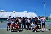 KPSNEWS 김채경 기자 | 김포시는 소속 테니스 선수단이 7월에 있을 ‘2025년 순천오픈 테니스 대회’를 앞두고 실전 대응력과 경기력을 한층 끌어올리기 위해 충남 당진에서 하계 전지훈련에 돌입했다고 10일 밝혔다. 이번 전지훈련은 7월 10일부터 20일까지 11일간 당진 고대종합운동장 테니스장에서 진행되며, 김포시청 테니스팀 최재원 감독을 비롯해 정홍, 손지훈, 곽호민, 김대한, 김동주, 이재명 등 총 6명의 선수가 참가했다. 특히 이번 훈련은 체력·기술 훈련을 넘어, 당진시청 직장운동경기부 테니스팀과의 합동훈련 프로그램이 포함돼 실전 감각을 극대화하는 데 중점을 뒀다. 양 팀은 복식 및 단식 경기 중심의 스파링, 전략 분석 등 실전 상황에 가까운 훈련을 통해 경기운영능력과 전술적 완성도를 끌어올리고 있다. 전지훈련 첫날에는 당진시청 체육진흥과장(임성룡)이 직접 훈련장을 찾아 김포시청 선수단을 환영하며, 격려의 메시지를 전달해 눈길을 끌었다. 이는 두 지자체 간의 스포츠 교류와 상호 협력의 의미를 더하며, 선수들의 사기를 높이는 데 큰 역할을 했다. 최재원 감독은 “이번 전지훈련은 실전처럼 훈