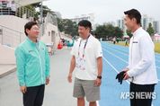 KPSNEWS 김채경 기자 | 용인특례시 직장운동경기부 소속 육상팀 선수들이 대한민국과 용인의 위상을 드높였다. 5월 27일부터 31일까지 경상북도 구미에서 열리는 ‘제26회 구미아시아육상경기선수권대회’에서 용인특례시 소속으로 경기에 참가한 남자 높이뛰기의 우상혁 선수는 29일 밤 열린 결선에서 금메달을 목에 걸었다. 우 선수는 결선에서 2m29를 넘었으며, 올해 열린 5개 국제대회에서 연속으로 1위를 차지해 세계 최정상임을 입증했다. 우 선수는 또 2023년 방콕 대회에 이어 아시아육상선수권대회 2연패도 달성했다. 대한민국 선수의 이 대회 2연패 기록은 1991년부터 1995년까지 아시아육상선수권대회에서 3회 연속 우승을 차지한 이진택 선수 이후 30년만에 나온 것이다. 이번 대회에 참가한 용인특례시 소속 유규민 선수는 28일 열린 남자 세단뛰기 결선에서 동메달을 차지했다. 대한민국 선수단은 29일 현재 3개의 메달(금메달 1개, 은메달 1개, 동메달 1개)을 획득했는데, 이중 금메달(우상혁)과 동메달(유규민)을 용인특례시청 소속 선수들이 땄다. 이상일 시장은 29일 저녁