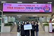 KPSNEWS 김채경 기자 | 수원 영통중학교 창업동아리 학생들이 창업 활동 수익금을 모아 수원시 취약계층 시민을 위해 기부했다. 1월 29일 수원시청 본관 1층 로비에서 열린 기부금 전달식에는 윤영숙 시민복지국장, 영통중학교 창업동아리 학생 등이 참석했다. 학생들은 직접 디자인·제작한 탁상용 달력 100개를 판매해 마련한 수익금 45만 원을 수원시에 전달했다. 수원시는 기부금을 취약계층 시민 지원을 위해 사용할 예정이다. 영통중학교 창업동아리 학생들은 “작은 나눔이지만 어려운 이웃들에게 도움이 되기를 바라는 마음으로 기부에 참여했다”며 “직접 만든 작품으로 나눔을 실천할 수 있어 기쁘다”고 소감을 밝혔다. 윤영숙 시민복지국장은 “학생들이 활동 수익금으로 이웃사랑을 실천한 모습이 대견하다”며 “따뜻한 나눔이 지역사회 전반으로 확산되기를 바란다”고 말했다.