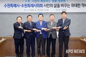 KPSNEWS 김채경 기자 | 수원시 여야가 “민생안정을 위한 시민체감 숙원사업을 추진하겠다”고 공동선언을 했다. 이재준 수원시장, 수원시의회 이재식 의장, 김정렬 부의장, 김동은 더불어민주당 교섭단체 대표, 박현수 국민의힘 교섭단체 대표는 10일 시청 상황실에서 여야 공동선언을 하고, 협력을 약속했다. 수원시 여야가 뜻을 모아 추진하는 시민체감 숙원사업은 ▲출산지원금 확대 ▲청소년 생리용품 지원 ▲무상교통 ▲대상포진 무료접종 등 시민들에게 실질적으로 도움이 되는 것들이다. 10월 조례안 의결, 예산 편성 후 내년 시행 예정 10월 임시회에서 조례안을 의결하고, 11월 정례회에서 예산을 편성한 후 내년에 시행할 계획이다. ‘무상교통’은 70세 이상 어르신 등이 무료로 대중교통을 이용할 수 있도록 교통비를 지원하는 사업이고, ‘청소년 생리용품 지원’은 11~18세 여성 청소년에게 생리용품을 지원하는 것이다. ‘출산지원금 확대’는 첫째 아이 출산지원금(50만 원)을 신설하고, 둘째 아이 출산지원금은 기존 50만 원에서 100만 원으로 상향하는 것이다. ‘대상포진 무료 예방접종’은 65세 이