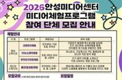 KPSNEWS 김채경 기자 | 안성미디어센터는 지역 어린이와 청소년이 미디어를 쉽고 재미있게 접할 수 있도록 ‘2026년 미디어체험프로그램’에 참여할 관내 어린이집, 유치원, 학교 등 단체를 모집한다고 밝혔다. 이번 프로그램은 아이들이 영상과 소리를 직접 다뤄보며 미디어의 원리를 이해하고 창의력과 표현력을 키울 수 있도록 기획된 체험형 교육이다. 영상·라디오 스튜디오를 활용해 진행되며, 공간·대상별 직업체험과 미디어 놀이 중심의 구성으로 어린이와 청소년이 즐겁게 참여할 수 있는 것이 특징이다. 2026년에는 ▲크로마키 체험(우주·세계여행 영상 촬영) ▲TV 뉴스 제작 체험 ▲뮤직 차트 방송 제작 ▲폴리(효과음) 체험 등 다양한 프로그램이 마련된다. 각 프로그램은 연령대에 맞춰 구성되며, 방송 직업 탐색과 실습 중심 활동을 통해 참여자의 흥미와 몰입도를 높인다. 모집 대상은 안성시 관내 6세 이상 어린이부터 초·중·고등학생이 포함된 어린이집, 유치원, 학교, 기관 등 단체로, 최소 10명에서 최대 30명 내외의 15개 팀을 선착순 모집한다. 체험비는 전액 무료이며, 프로그램은 오는 2월부터 5월까지 매주 수요일