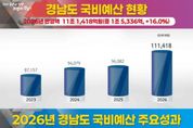 KPSNEWS 김채경 기자 | 경상남도는 8월 29일 국무회의를 통과한 2026년 정부예산안의 경남도 국비 반영액은 지난해(9조 6,082억 원)보다 1조 5,336억 원이 증가한 11조 1,418억 원이라고 2일 밝혔다. 박완수 도지사는 이날 브리핑에서 “이번 정부 예산안에 경남도의 규모가 대폭 증가한 것은 남부내륙철도, 부산신항 김해 고속도로 등 주요 SOC 사업 예산이 대폭 반영되고, 예타 면제된 피지컬 AI 예산과 수해복구 예산이 포함됐기 때문”이라며 “이번 국비 확보는 단순한 수치를 넘어 경남의 교통·산업·경제 체질을 획기적으로 바꿀 전환점이 될 것”이라고 밝혔다. 또한 “정부의 AI·R&D 중심 혁신정책과 연계해 경남 주력 제조업의 AI 전환을 본격화하고, 도민의 신속한 일상 복귀를 위한 재해·재난 복구 예산도 확대 반영됐다”며 “내년도 국비를 마중물 삼아 경남을 산업·경제 중심지로 만들고 도민행복시대를 정착시키겠다”고 강조했다. 2026년 정부예산안 증가율은 8.1%(728조, 전년 대비 54조 7천억 증액)로, 인공지능(AI)와 연구개발(R&D), 균형발전, 저출생·고령화 대응 및 사회안전망 강화