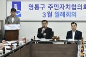 KPSNEWS 김채경 기자 | 수원시 영통구은 지난 16일, 주민자치협의회가 망포2동 행정복지센터에서 2026년 3월 월례회의를 개최했다고 밝혔다. 이날 회의에는 각 동 주민자치회장이 참석한 가운데 수원시 평생학습과 주관으로 동 평생학습센터 운영 간담회를 진행했으며, 각 동의 특색과 주민 수요를 반영한 학습공간 조성 방향을 집중 논의했다. 장대현 영통구 주민자치협의회장은 “이번 동 평생학습센터 설치를 계기로 주민의 관심사와 필요에 맞는 프로그램을 더 가까이 누릴 수 있게 될 것”이라며 “단순한 강좌를 넘어 서로 배우고 연결되는 커뮤니티 공간으로 자리잡길 바란다”고 말했다. 장수석 영통구청장은 “주민이 실제로 체감할 수 있는 트렌디한 프로그램을 꾸준히 발굴할 수 있도록 영통구가 든든히 뒷받침하겠다”고 밝혔다. 영통구 주민자치협의회는 앞으로도 정기회의를 통해 지역 현안을 공유하고, 동 평생학습센터가 주민자치 활동의 거점으로 뿌리내릴 수 있도록 협력을 이어갈 계획이다.