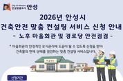 KPSNEWS 김채경 기자 | 안성시는 올해 ‘건축안전 맞춤 컨설팅 서비스(노후 마을회관 및 경로당 안전점검)’를 시행한다고 밝혔다. 건축안전 맞춤 컨설팅 서비스는 관련 법령상 정기 점검 의무가 없어 정확한 실태 진단과 안전 취약 요소 파악에 어려움이 있는 소규모 노후 마을회관 및 경로당을 대상으로 안전점검을 실시해, 건물 노후화로 인한 안전사고를 예방하고 시민의 안전한 생활환경 조성에 기여하고자 시행하는 사업이다. 점검 대상은 '건축물관리법' 제15조에 따른 소규모 노후 건축물 점검 대상 중 안전에 취약하거나 재난의 위험이 있다고 판단되는 마을회관 및 경로당이다. 주요 점검 항목은 ▲ 건축물 주요 부재의 구조적 균열과 변형 상태 ▲ 건축물 비구조체 결함 사항 ▲ 주변 축대, 옹벽, 담장 등의 안전상태 등이며, 점검자가 직접 현장을 방문해 육안점검 방식으로 진행된다. 점검을 희망하는 마을회관 및 경로당의 소유자 또는 관리자는 신청서를 작성해 안성시청 건축과에 방문 접수하거나 등기우편으로 접수할 수 있으며, 신청은 연중 상시 가능하다. 점검 후에는 건축물 관리자에게 점검 결과와 함께 보수