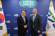 KPSNEWS 김채경 기자 | 김동연 경기도지사가 프랑스에 본사를 둔 세계적 산업용 가스 기업 에어 리퀴드사와 경기도 투자 확대 방안에 대해 논의했다. 김동연 지사는 2일 여의도 페어몬트 호텔 회의실에서 프랑수아 자코(François Jackow) 에어리퀴드(Air Liquide) 회장(CEO)과 면담을 진행했다. 자코 회장은 ’25 세계 수소엑스포(H2 MEET) 수소위원회 CEO 정상회의에 참석차 방한했다. 자코 회장은 이날 면담에서 지난 9월 에어리퀴드가 국내 산업용가스 기업인 DIG에어가스를 4조 6천억 원 규모로 인수하기로 결정했고, 현재 관련 절차를 진행하고 있다는 소식을 전했다. 그러면서 에어리퀴드의 한국 내 입지 강화와 경기도내 사업확대가 예상된다며 관심과 지원을 요청했다. 김동연 지사는 도내 투자확대를 환영하면서 “작년 다보스포럼에 제가 한국정치인으로는 유일하게 참석했다. 그 당시가 불법 계엄 한 달 뒤였기 때문에 한국 경제에 대해서 다들 궁금해해서 명함에 ‘Trust in Korea’라고 썼는데 1년이 채 안 된 지금 그 말이 사실인 것으로 드러났다”며 “경기도에 대한 투자결정에 대해 잘하셨다