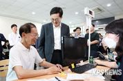KPSNEWS 김채경 기자 | “제가 써드릴까요?” 김동연 경기도지사가 ‘민생회복 소비쿠폰 신청서’ 작성에 곤란을 겪던 동네 어르신에게 건넨 말이다. 21일 오후 2시 수원시 원천동 행정복지센터. 소비쿠폰 발급 첫날 현장점검에 나선 김동연 지사는 서류작성을 제대로 하지 못해 진도를 내지 못하고 있던 한 어르신을 발견하곤 팔을 걷어붙였다. 김 지사는 곁에 있던 행정복지센터 직원에 “자필 아니어도 대신 써드리는 것은 괜찮느냐?”고 물었고 직원은 “서명만 본인이 직접 하시면 된다”고 답했다. 이에 김 지사는 어르신에게 주민등록증을 건네받아 신청서류란의 주소칸 등을 직접 채워주었다. 어르신의 첫날 접수번호는 122번. 마침내 어르신이 창구에서 접수를 마치자 김 지사는 “멋지네요. 잘 쓰세요”라고 덕담을 건넸다. 그러면서 “11월 말까지 쓰셔야 해요”라고 사용기한을 안내했다. 이어 김동연 지사는 행정복지센터 창구 직원들을 격려하면서 “민생회복 소비쿠폰은 취지가 소비 진작을 위한 것이고 소상공인 자영업자를 살리기 위한 것이기 때문에 한 분도 빠짐없이 다 이용해주시길 바란다”고 말했다.