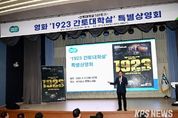 KPSNEWS 김채경 기자 | 경기도는 간토대학살 101주기(9월 1일)를 맞아 8월 27일 경기도청 직원을 대상으로 다큐멘터리 영화 ‘1923 간토대학살’을 경기도청 북부청사에서 상영했다. 경기도는 1924년 국내 최초로 ‘간토대학살 1주기 추도회’가 열렸던 곳으로, 100년이 지난 올해 도청에서 열린 ‘1923 간토대학살’ 영화 상영회는 역사를 잊지 않겠다는 경기도의 강한 의지를 보여주는 행사라고 할 수 있다. ‘1923 간토대학살’은 ′1923년 9월 1일 간토 대지진 직후에 일어난 일본 정부의 조선인 대학살 만행을 담은 다큐멘터리 영화로, 101년간의 침묵을 깨고 간토대학살의 진실을 밝히기 위한 작품이다. 특히, 이번 영화에서는 간토 대지진 후 중국에서 급파된, 영국 함대 호킨스 기함의 로스 장교가 찍은 것으로 추정되는 간토 학살 사진도 처음 공개된다. 또한 영화에는 4년여 간의 집요한 취재 끝에 얻은, 간토대학살 관련 수많은 특종과 귀중한 증언들도 가득 담겨있다. 일본 자위대 방위연구소, 도쿄도 공문서관, 유키오 (전)총리 인터뷰 등이 그것이다. 이와 같은 노력에 힘입어 ‘1923 간토대학