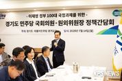 KPSNEWS 김채경 기자 | 김동연 경기도지사와 민주당 경기도 국회의원+원외위원장들이 오늘 ‘원팀’이 되어 정책간담회를 했다고 밝혔다. 민선 8기 출범이후 ‘야당 도지사+야당 국회의원(경기)’으로서의 정책 간담회는 몇차례 있었다. 하지만 오늘은 ‘여당 도지사+여당 국회의원’으로 입지가 달라진 상황에서의 첫 정책간담회였다. 남다른 의미가 있는 자리였던만큼 민주당 경기도 국회의원 53명 중 6선의 추미애-조정식, 5선의 정성호-윤호중-김태년 의원 등 42명이 참석했다. 이광재 전 의원 등 원외위원장 6명, 성남시분당구을 지역위원장이었던 김병욱 대통령비서실 정무비서관까지 모두 49명이 참석했다. 김동연 도지사는 인사말에서 “얼마전까진 ‘이기는 민주당’이었지만 이제는 ‘성공한 민주당’, ‘성공한 국민주권정부’”라면서 “성공한 이재명 국민주권정부로 가는 과정에서 경기도가 언제나 함께하고, 뒷받침하겠다”고 말했다. 김 지사는 “(새 정부 출범후)경기도는 우리 이재명 국민주권정부 제1의 국정파트너로서 많은 부분에 있어 함께 힘을 모으기 위해 애를 써왔다. 대선과정에서도 경기도가 해왔던 정책과 경기도가 내세웠던 것들이 이재